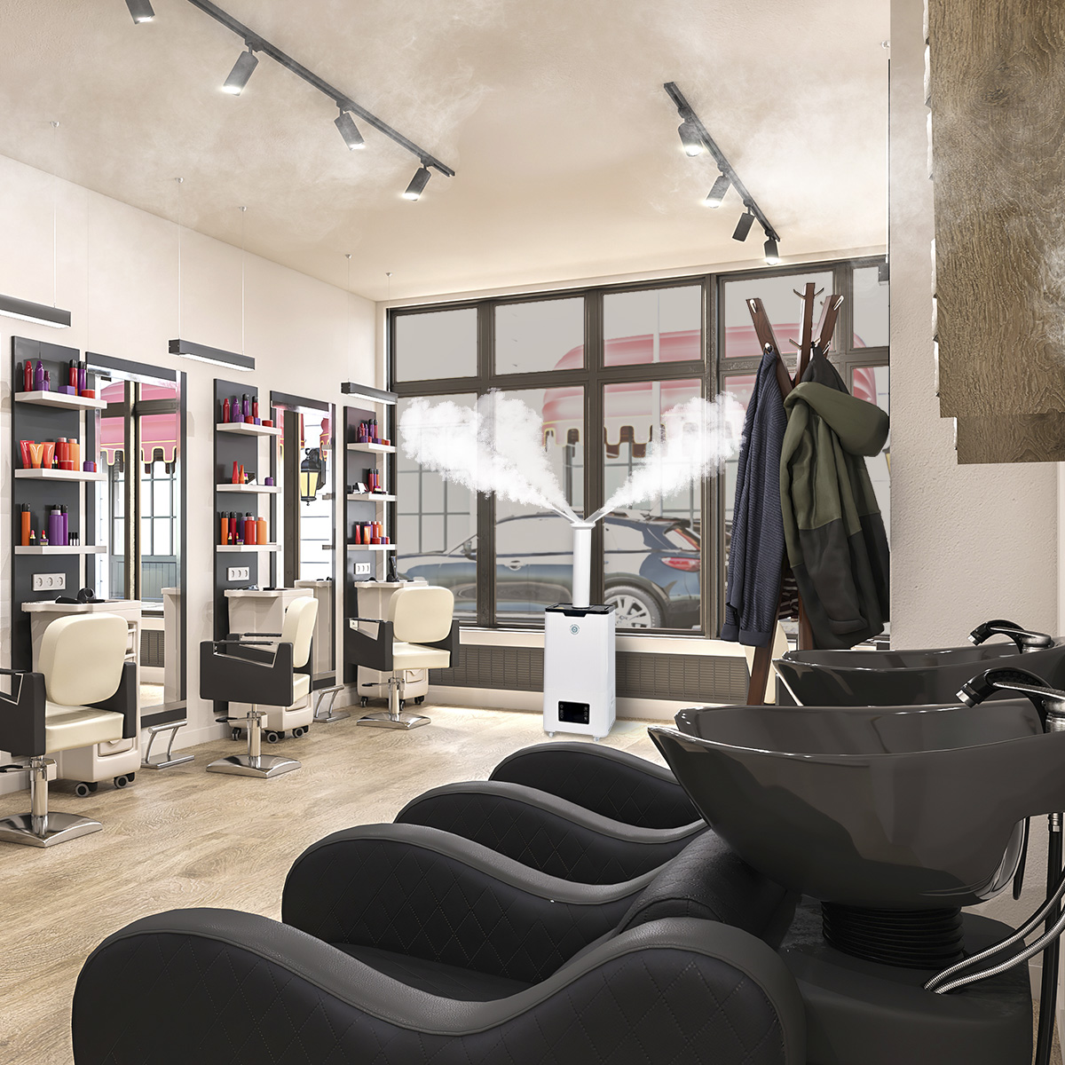 Our humidifiers feature specialized stainless-steel emitters, engineered to withstand the oxidizing power of HOCl and ensure long-lasting reliability. Fully digital and programmable, these units offer customizable settings to suit any space, from small offices to large industrial areas, making them the perfect solution for versatile and efficient indoor sanitation.